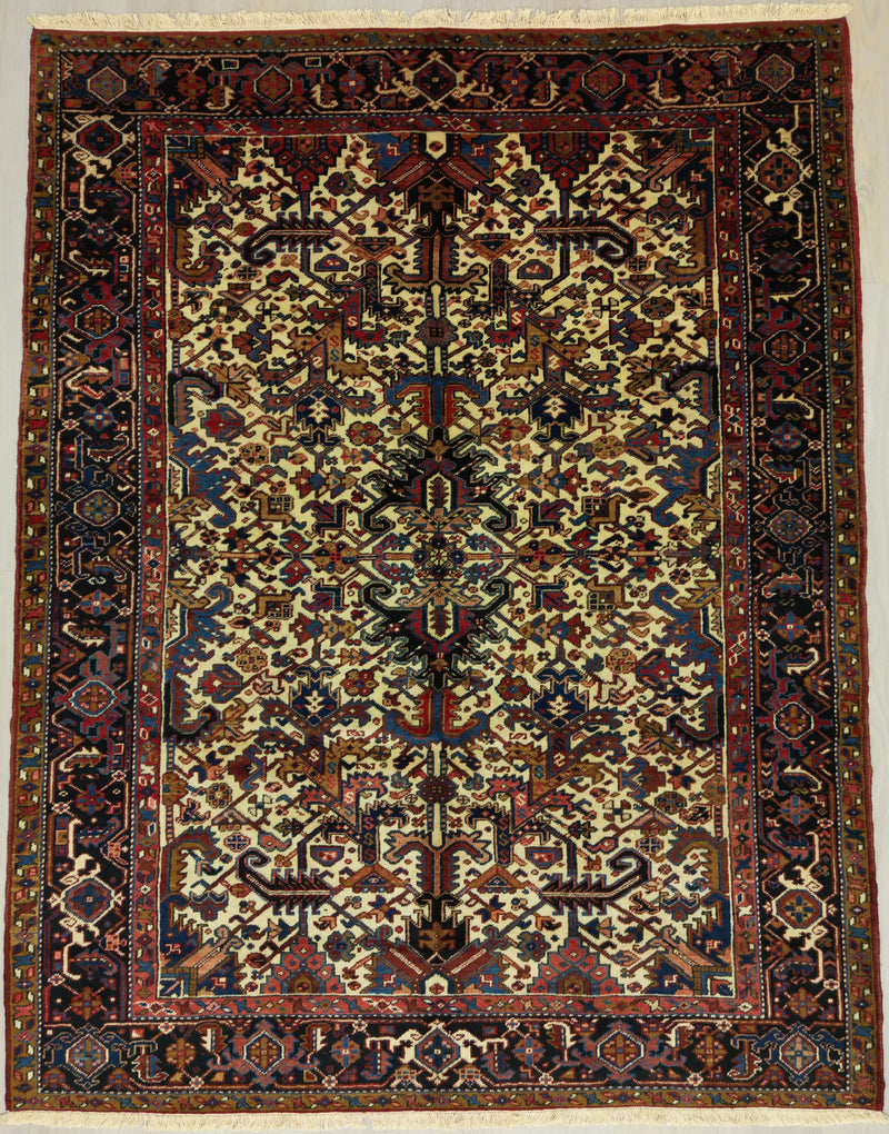 Vintage Persian Heriz Rug Circa 1940 | 6' 11" X 8' 10" | Ivory Colour | All-over Geometric Design | Tribal Production