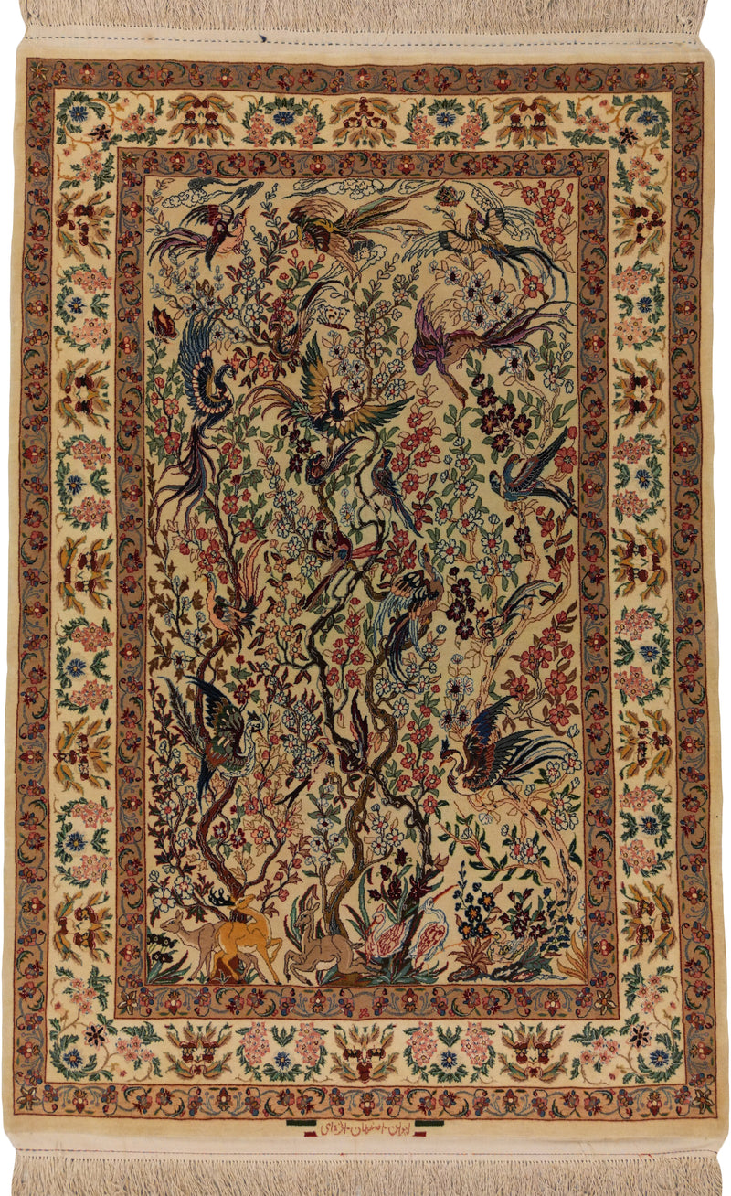 Persian Isfahan Rug | 3' 8" X 5' 7" | Flora & Fauna Design | Light Colours | Urban Production