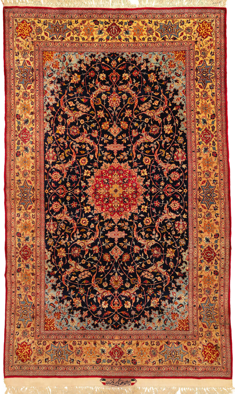 Persian Isfahan Rug | 4' 10" X 8' 0" | Navy-Blue & Beige Colours | Extremely Fine | Urban Production