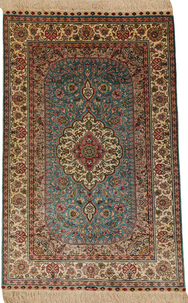Chinese Hereke Rug | 2' 10" X 4' 4" | Blue Colour | Pure Silk | Urban Production