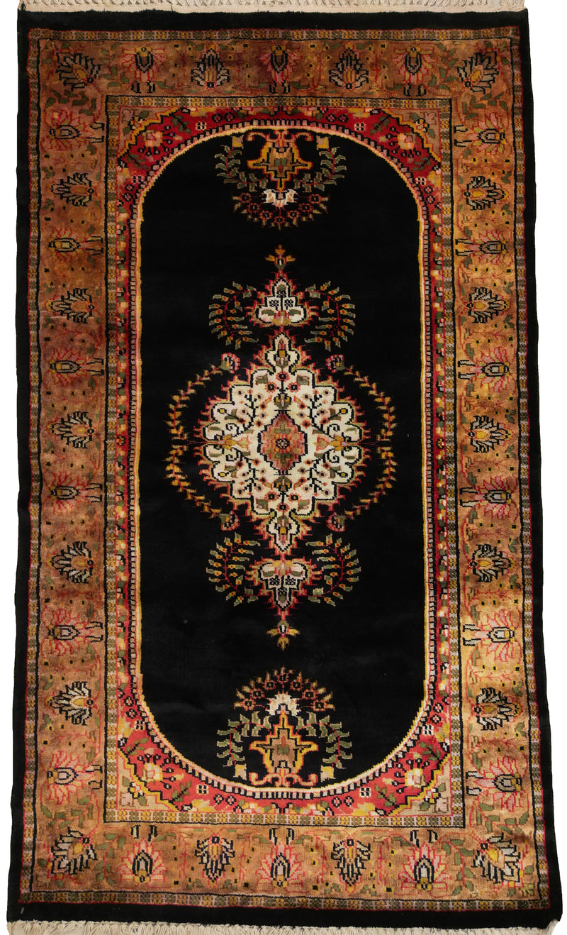 Pakistani Rug | 2' 10" X 4' 11" | Medallion Design | Midnight Blue & Brown Colours | Urban Production