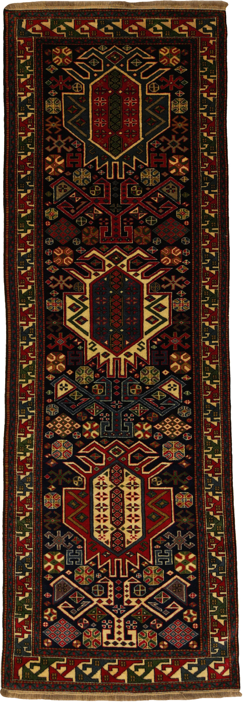 Caucasian Reproduction Runner | 2' 10" X 8' 6" | Midnight Blue & Red Colours | Geometric Design | Urban Production