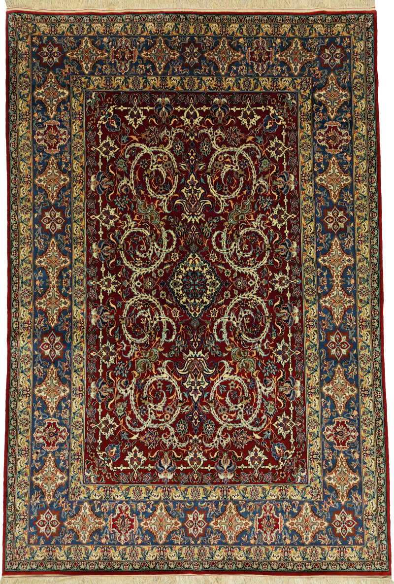 Persian Isfahan Rug | 4' 12" X 7' 4" | Red & Blue Colours | Extremely Fine | Urban Production