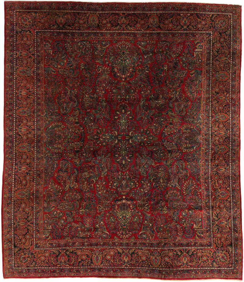 Antique Persian American Sarough Rug Circa 1930 | 11' 11" X 13' 10" | Floral Design | Raspberry Colour | Urban Production