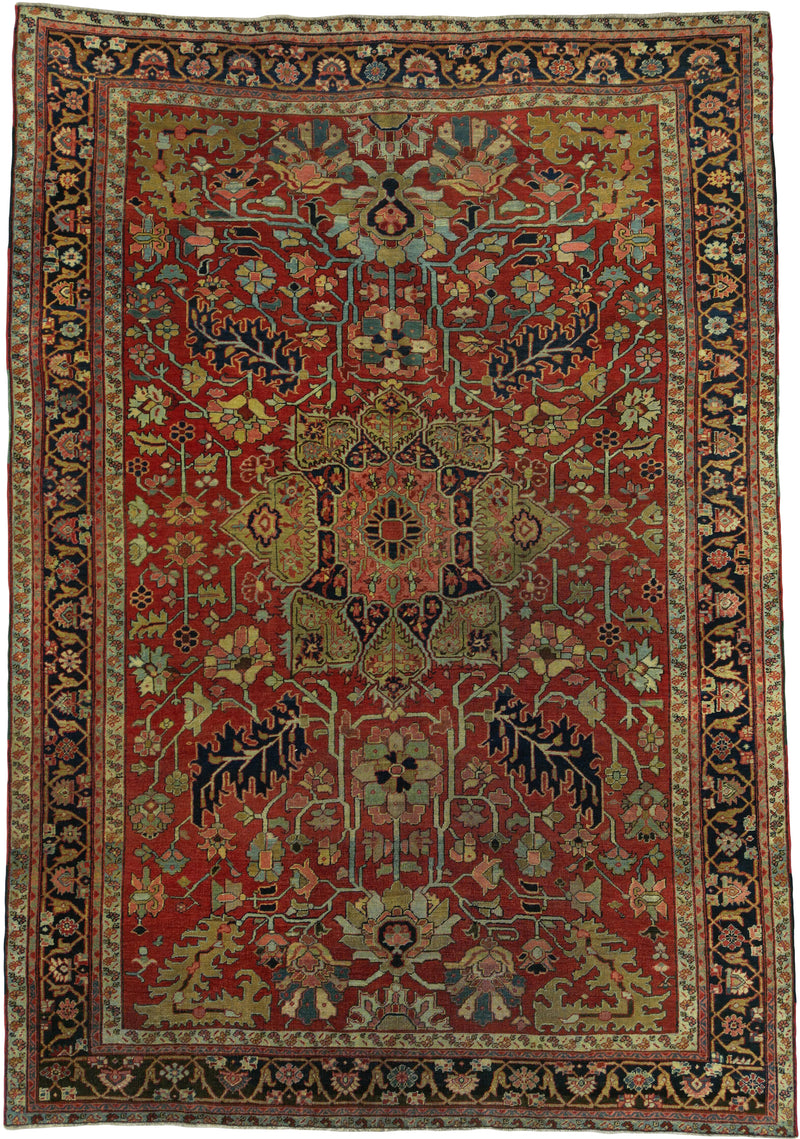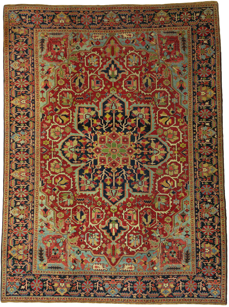 Antique Persian Heriz Rug Circa 1910 | 9' 6" X 12' 8" | Red & Blue Colours | Geometric Medallion Design | Tribal Production