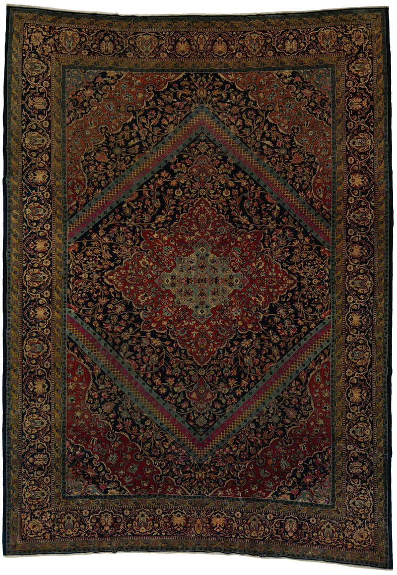 Antique Persian Kashan Rug Circa 1920 | 12' X 16' | Red & Blue Colours | Urban Production