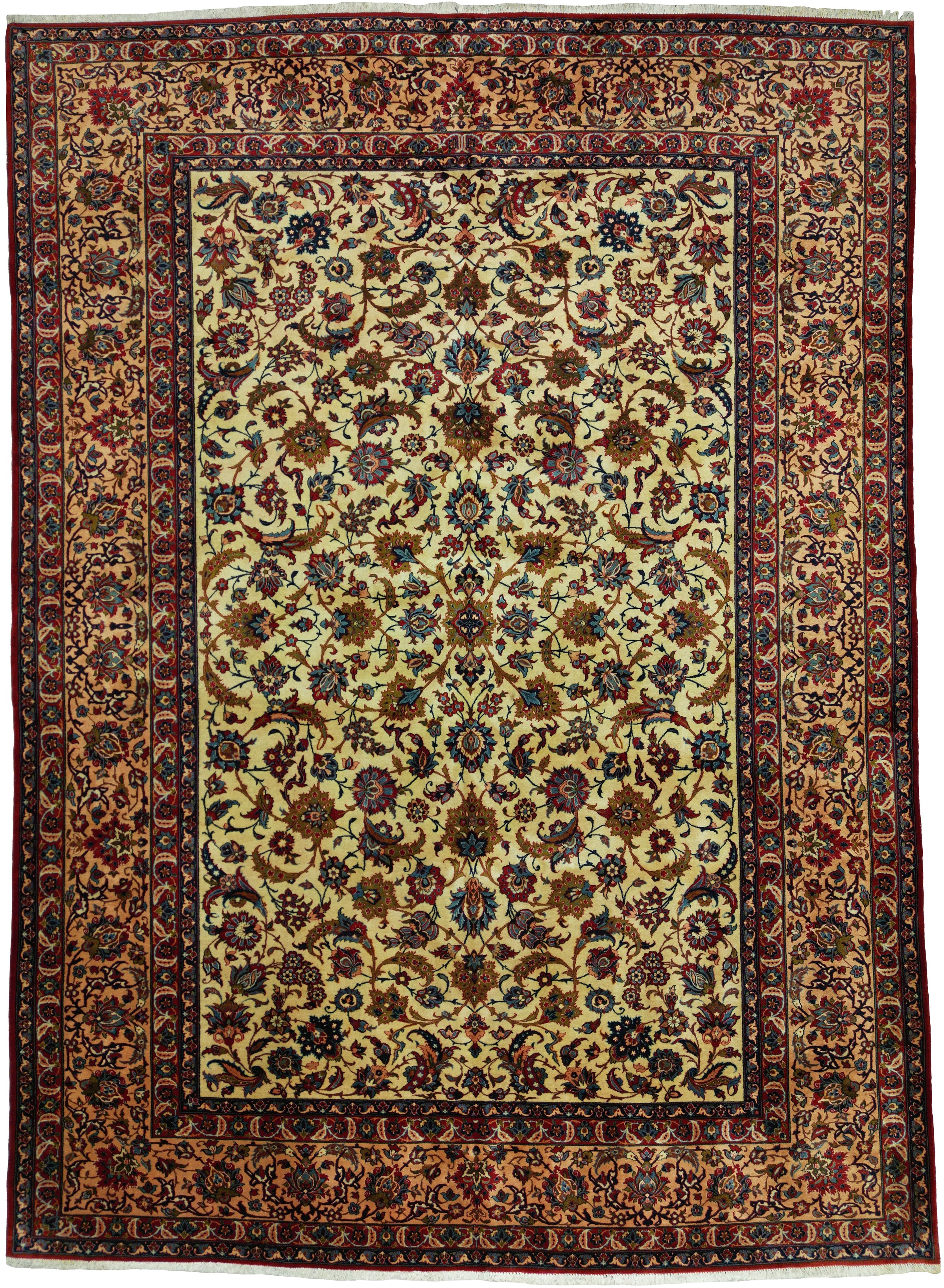 Vintage Persian Isfahan Najafabad Rug Circa 1960 | 10' 1" X 13' 11" | Light Colours | Floral Allover Design | Urban Production