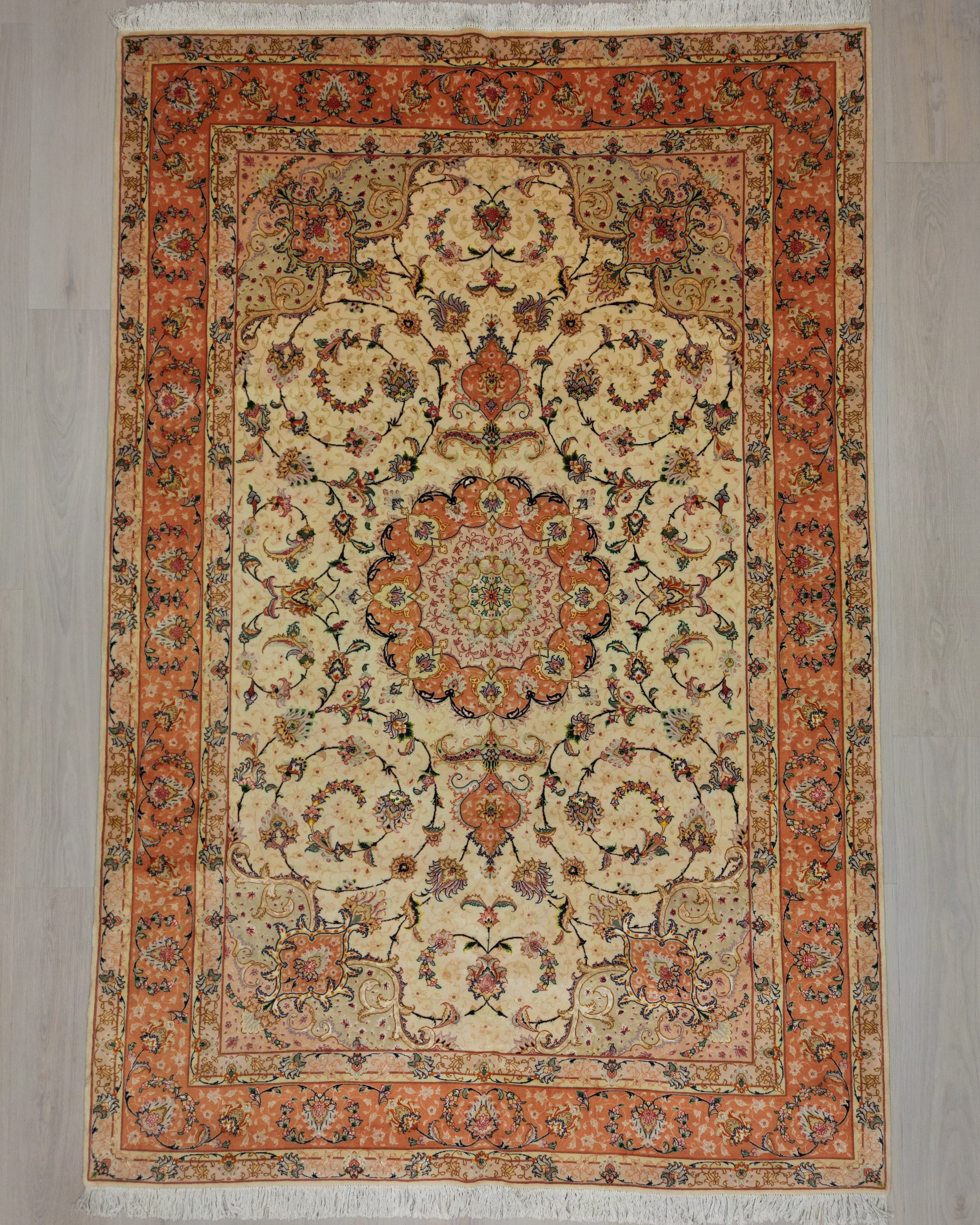 Persian Tabriz Rug | 6' 8" X 9' 10" | Peach & Beige Colours | Floral Medallion Design | Urban Production