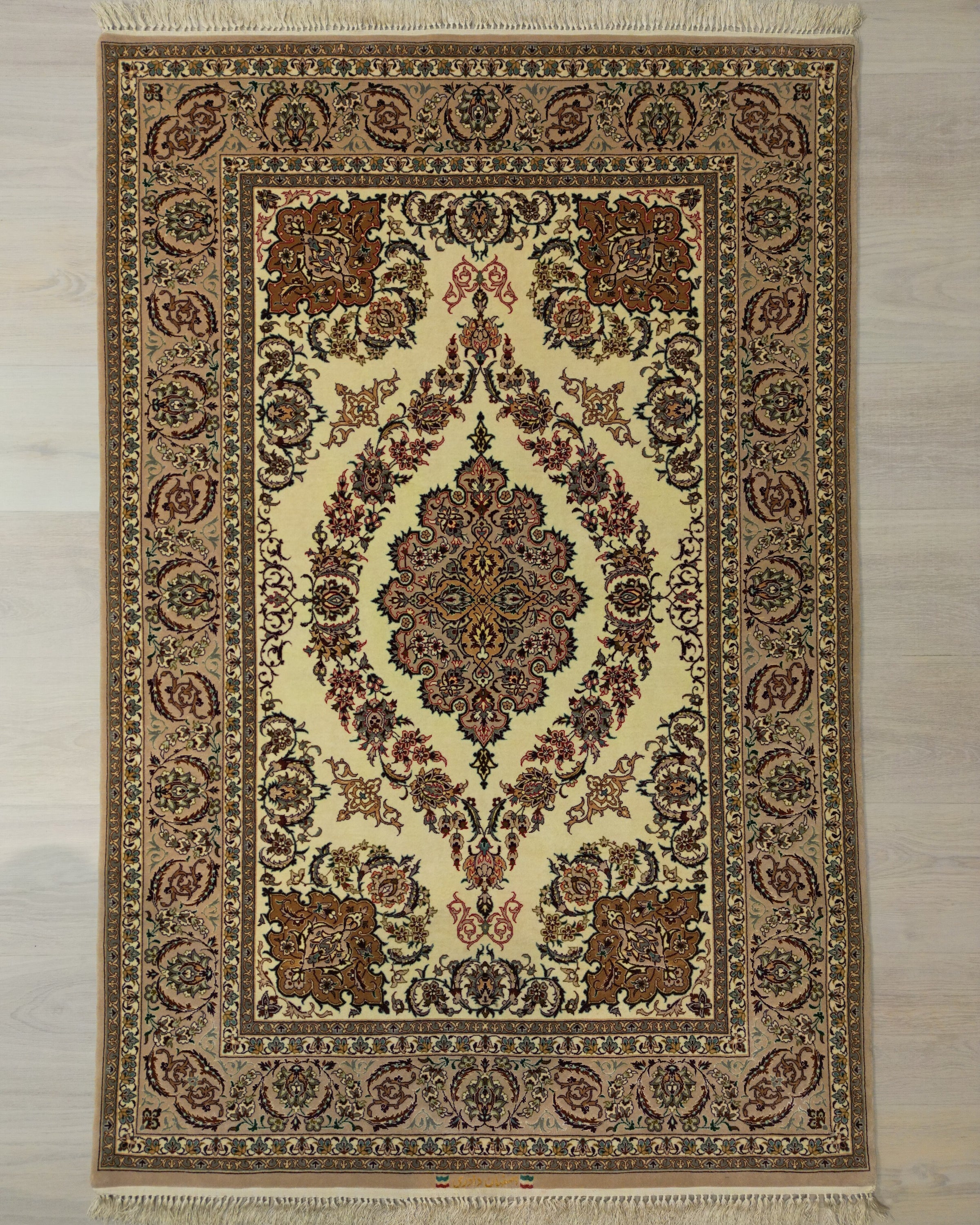 Persian Isfahan Rug | 4' 3" X 6' 5" | Light Colours | Medallion Design | Urban Production
