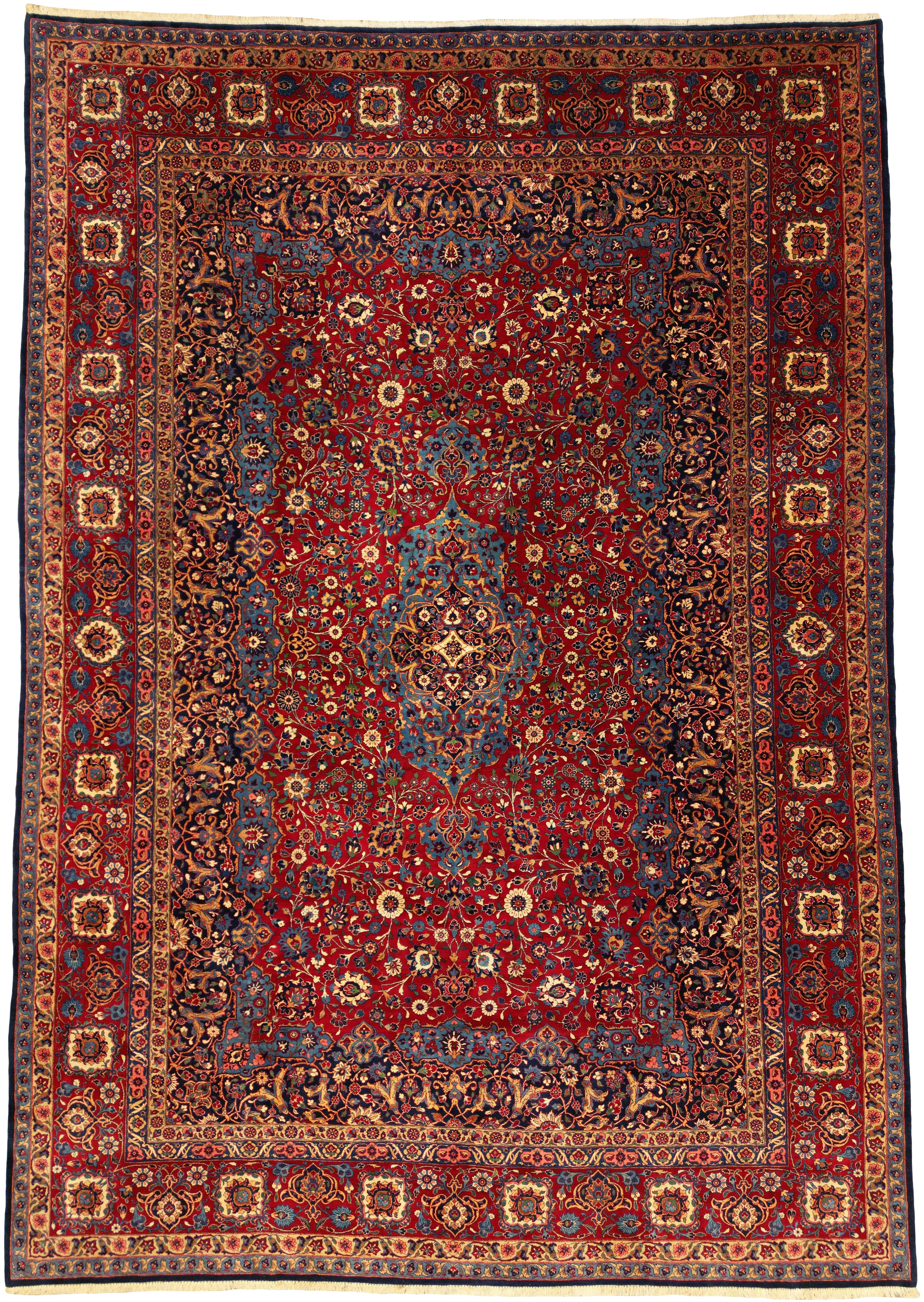 Antique Persian Qazvin Rug Circa 1930 | 11' 10" X 16' 12" | Red & Blue Colours | Medallion Design | Urban Production