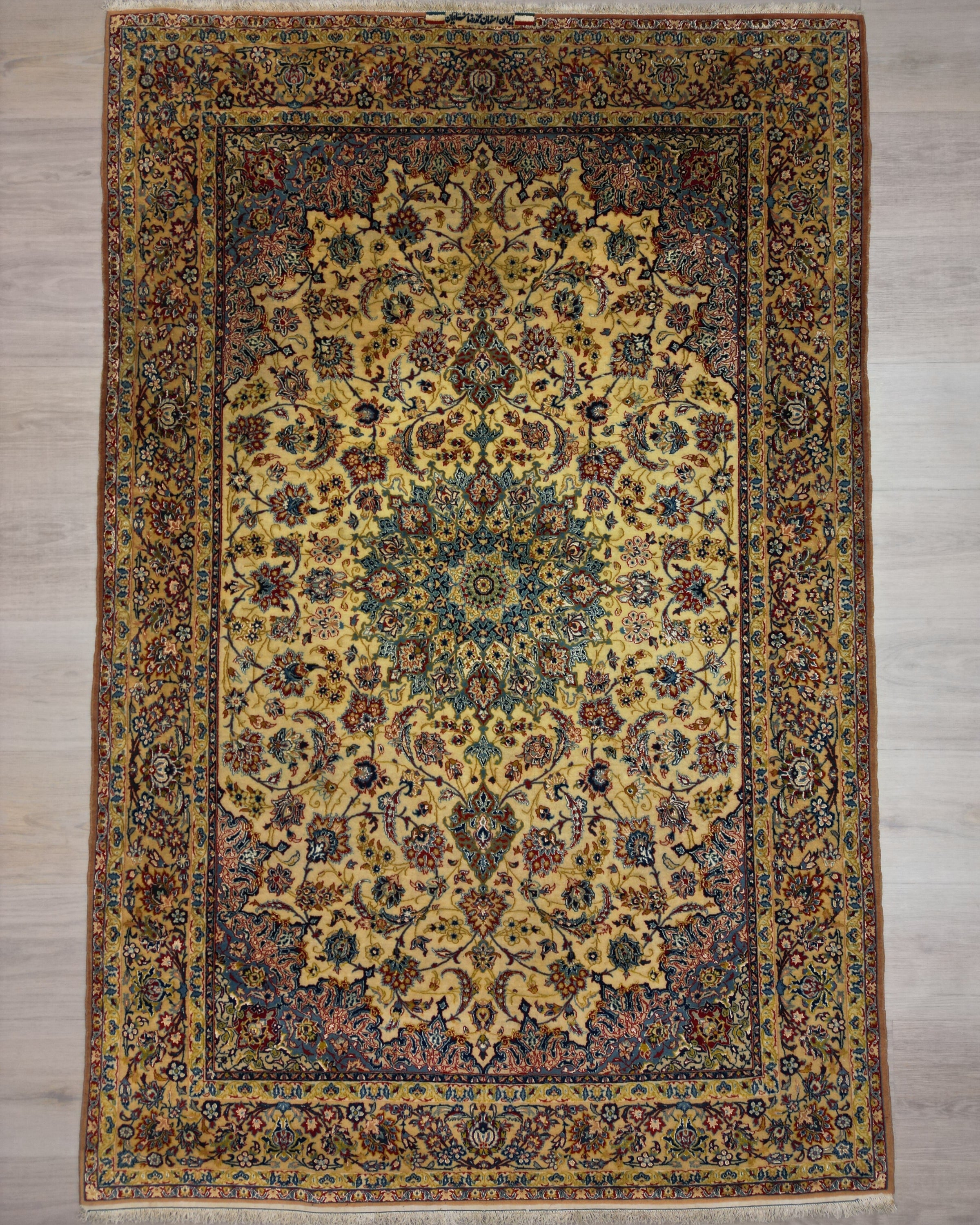 Persian Isfahan Rug | 4' 11" X 7' 6" | Beige & Blue Colours | Medallion Design | Urban Production