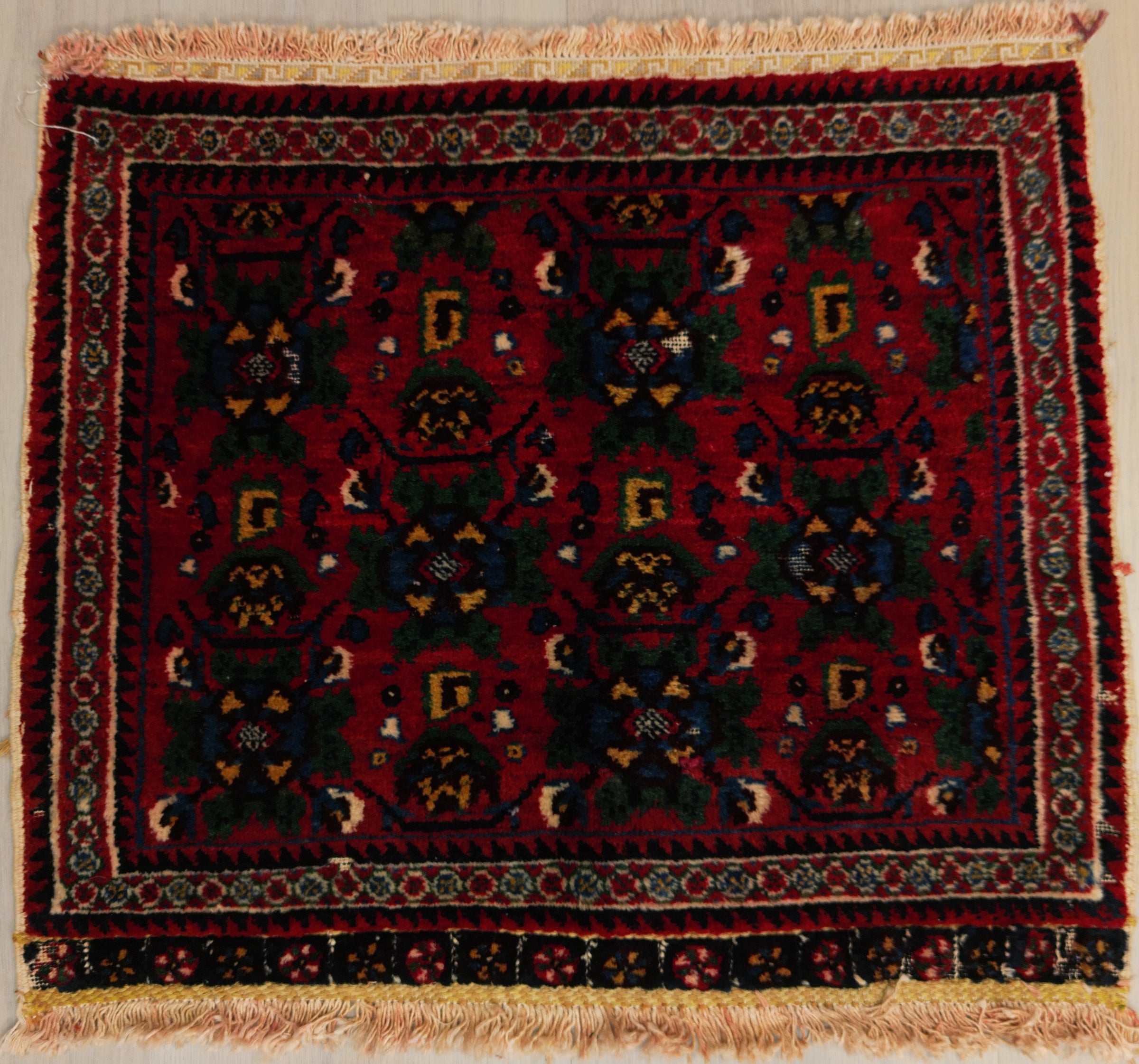 Vintage Persian Neriz Rug Circa 1950 | 2' 2" X 1' 10" | Red Colour | Allover Design | Khorjin | Tribal Production