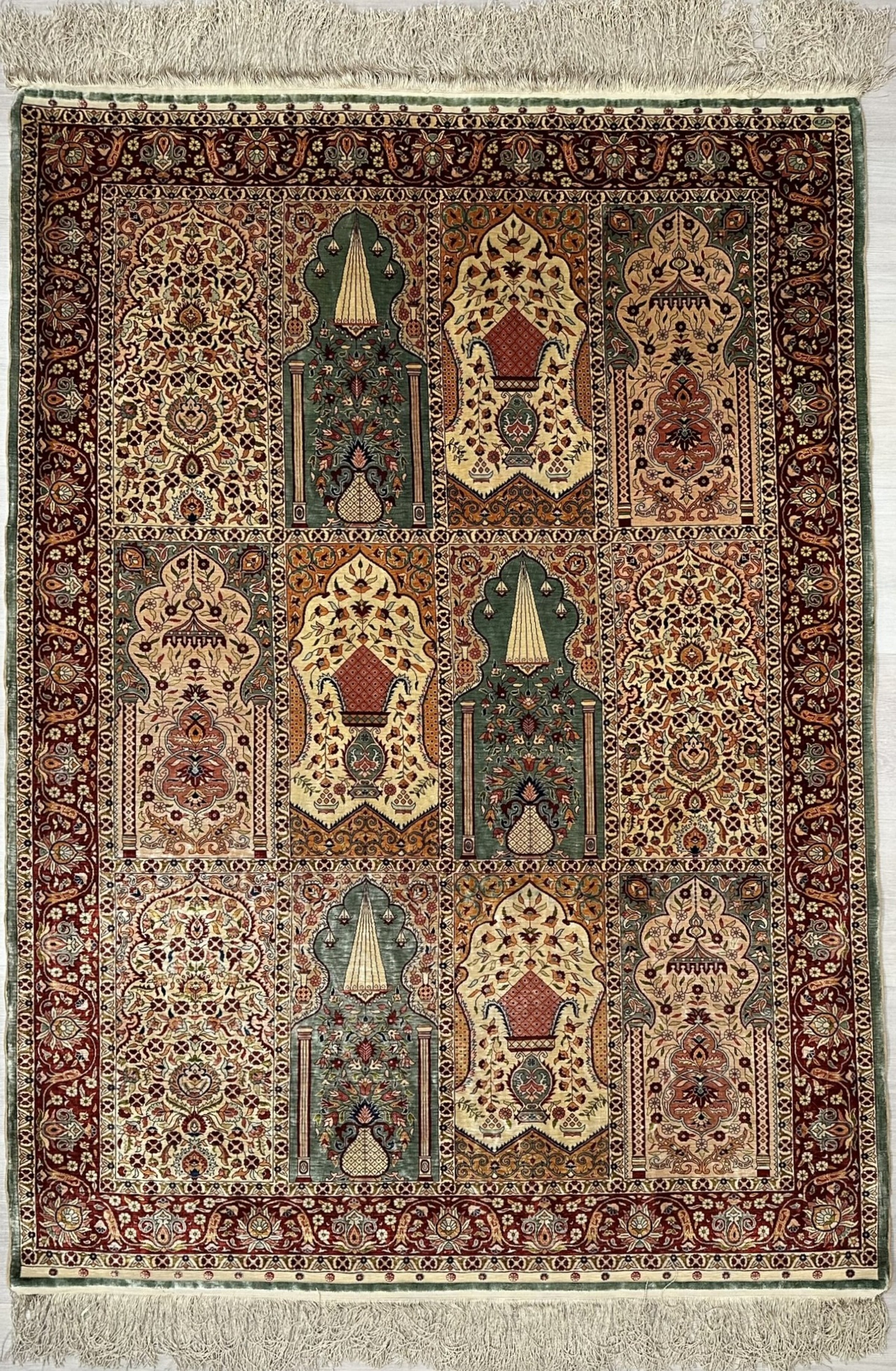 Vintage Turkish Hereke Rug Circa 1990 | 4' 3" X 5' 10" | Multicolour | Panel Design | Urban Production