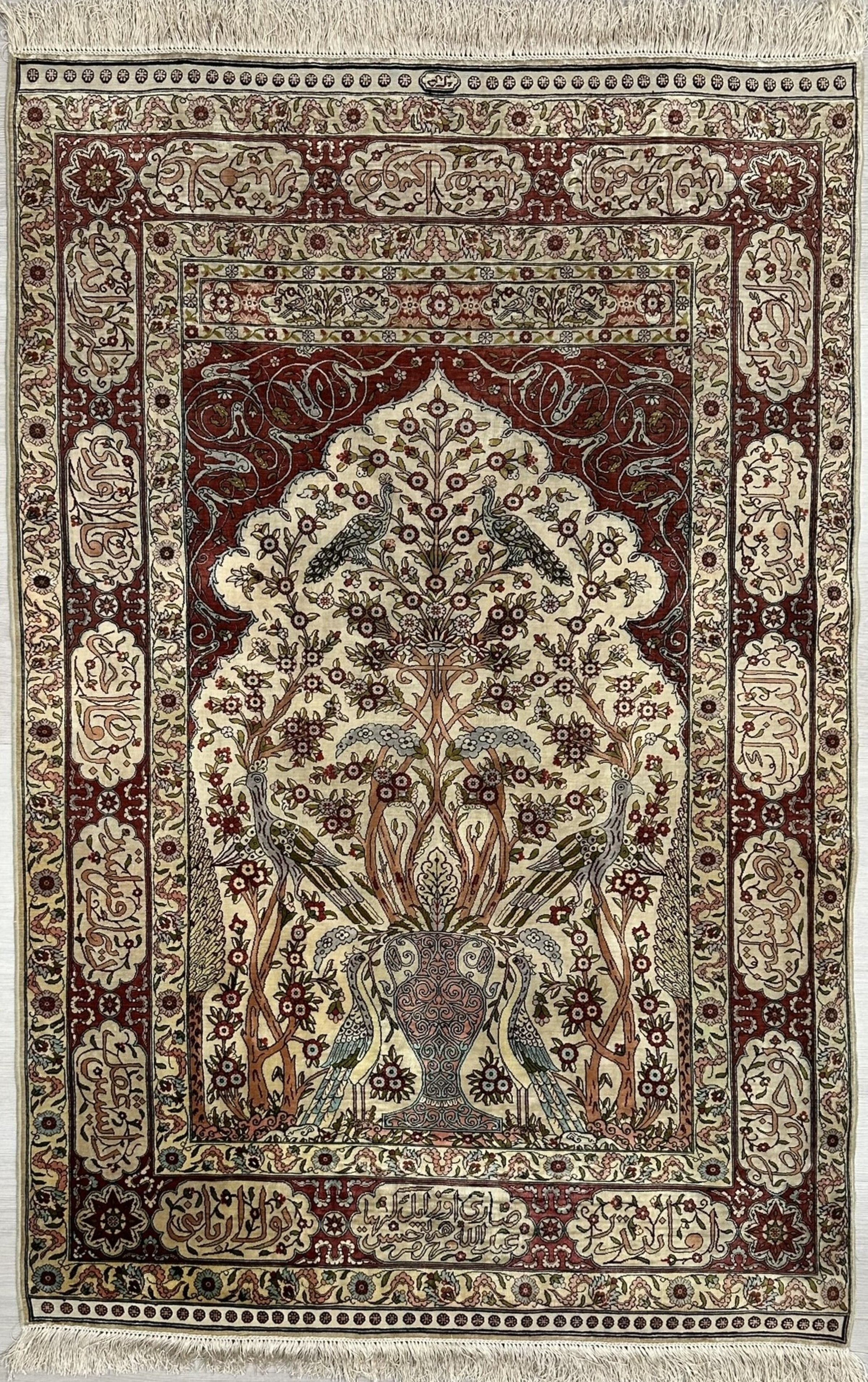 Vintage Turkish Hereke Rug Circa 1980 | 3' 3" X 4' 11" | Light Colours | Vase-Mihrab Design | Urban Production