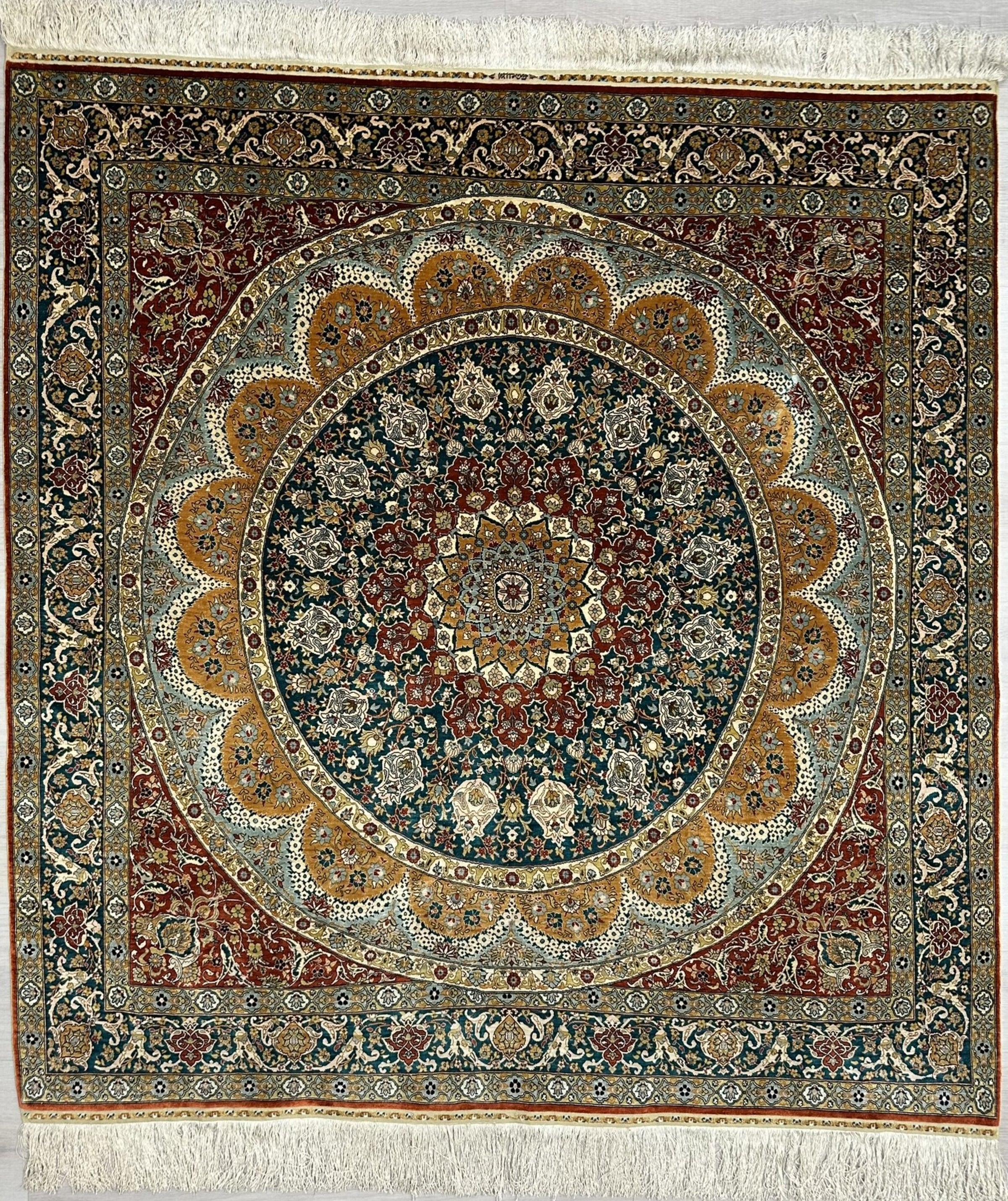 Vintage Turkish Hereke Rug Circa 1990 | 5' 4" X 5' 2" | Multicolour | Dome Design | Urban Production