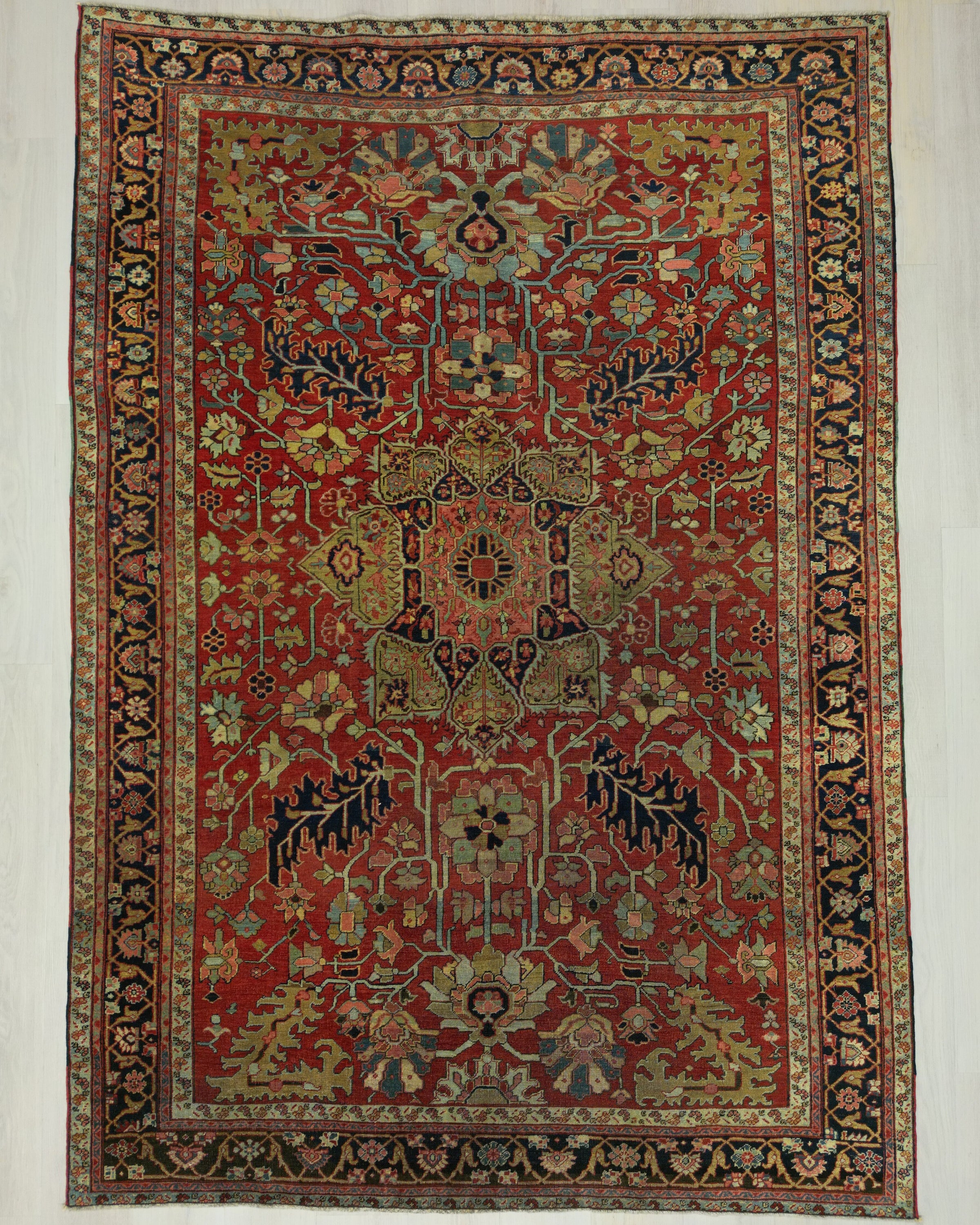 Antique Persian Heriz Rug Circa 1890 | 7' 8" X 10' 11" | Red Colour | Medallion Design | Tribal Production