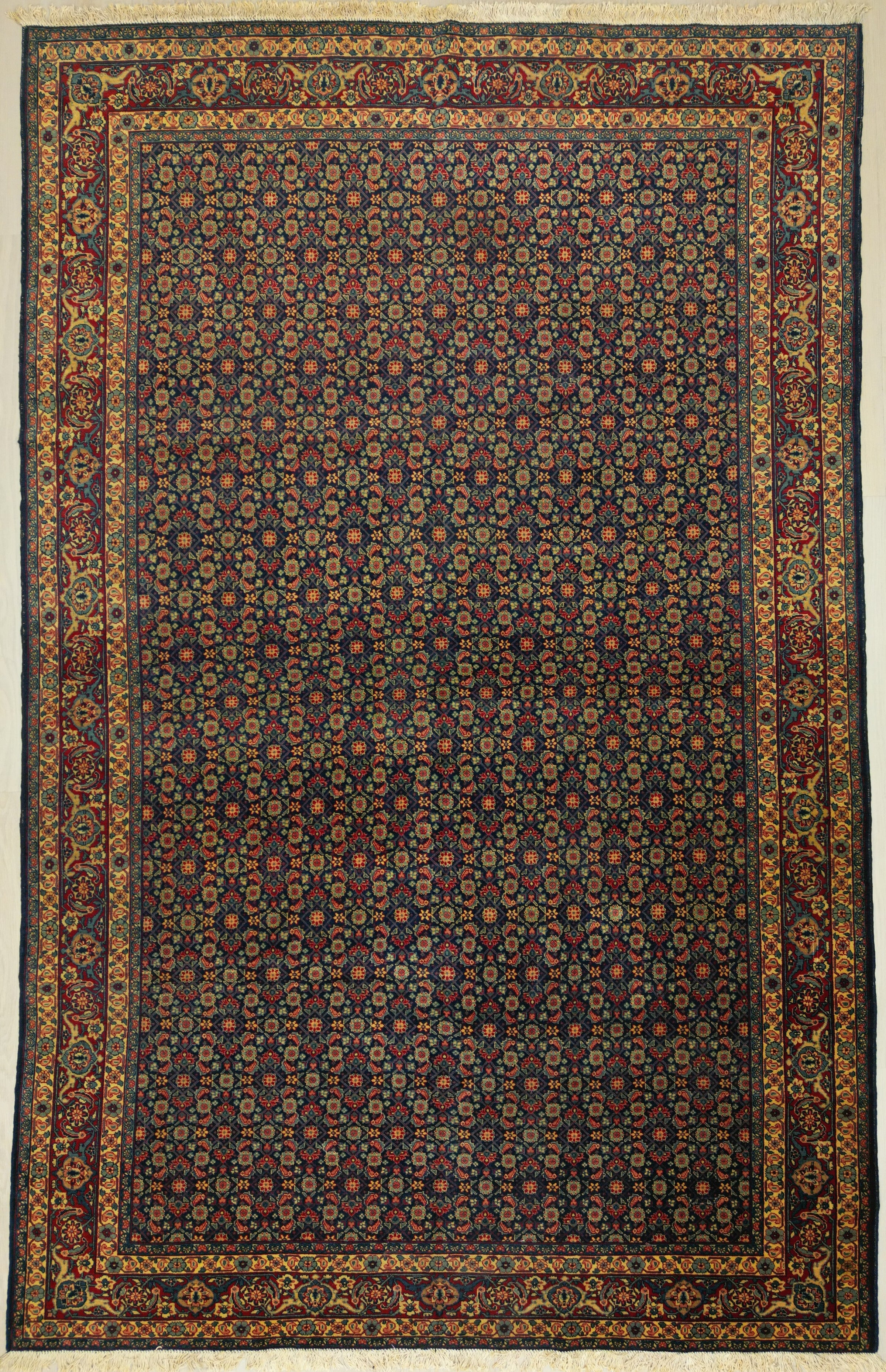 Antique Persian Tabriz Rug Circa 1930 | 7' 5" X 11' 6" | Midnight Blue & Red Colours | Herati Design | Urban Production