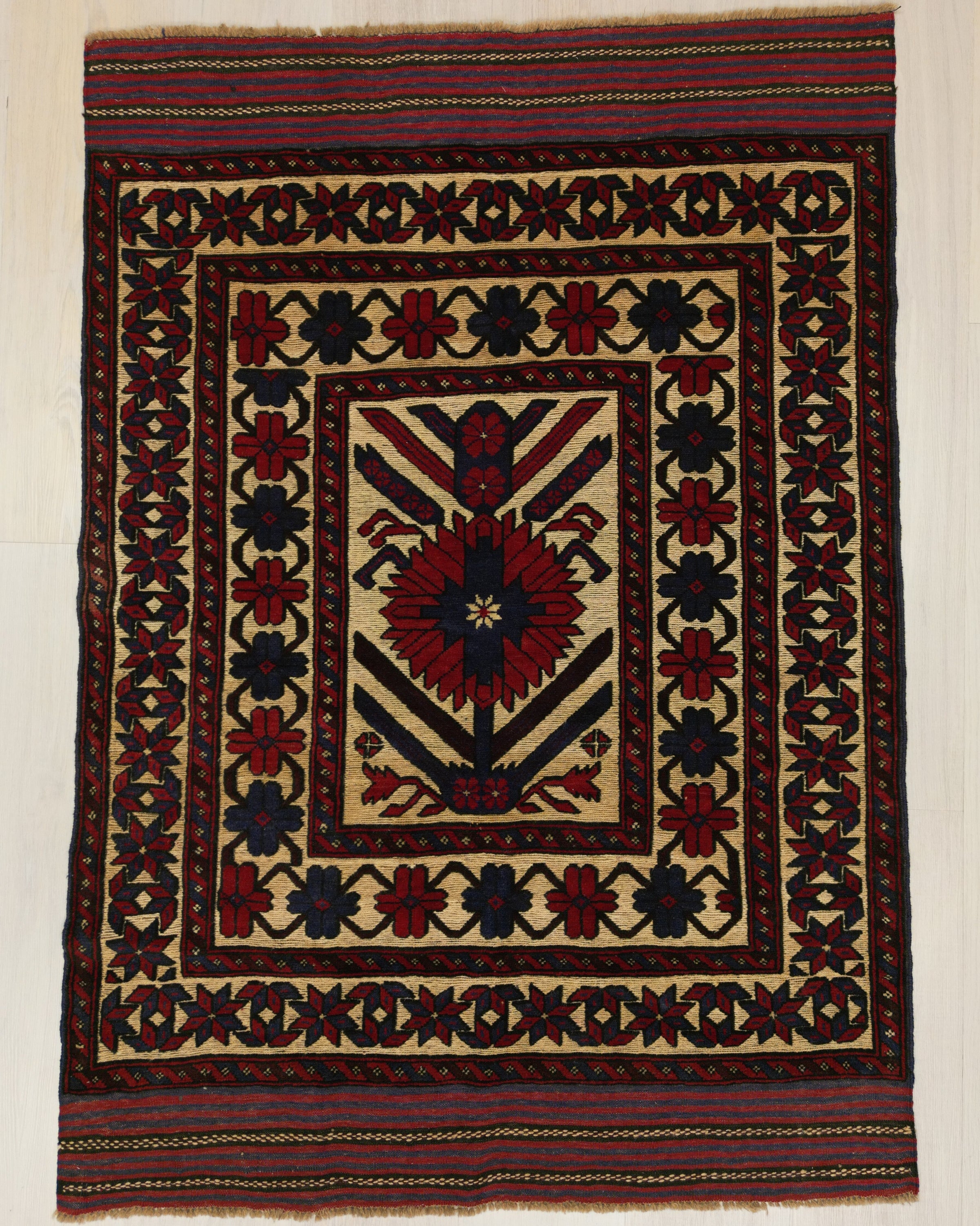 Persian Afghan Carpet-Kilim Rug | 4' 2" X 5' 10" | Cream & Red Colours | Geometric Design | Tribal Production