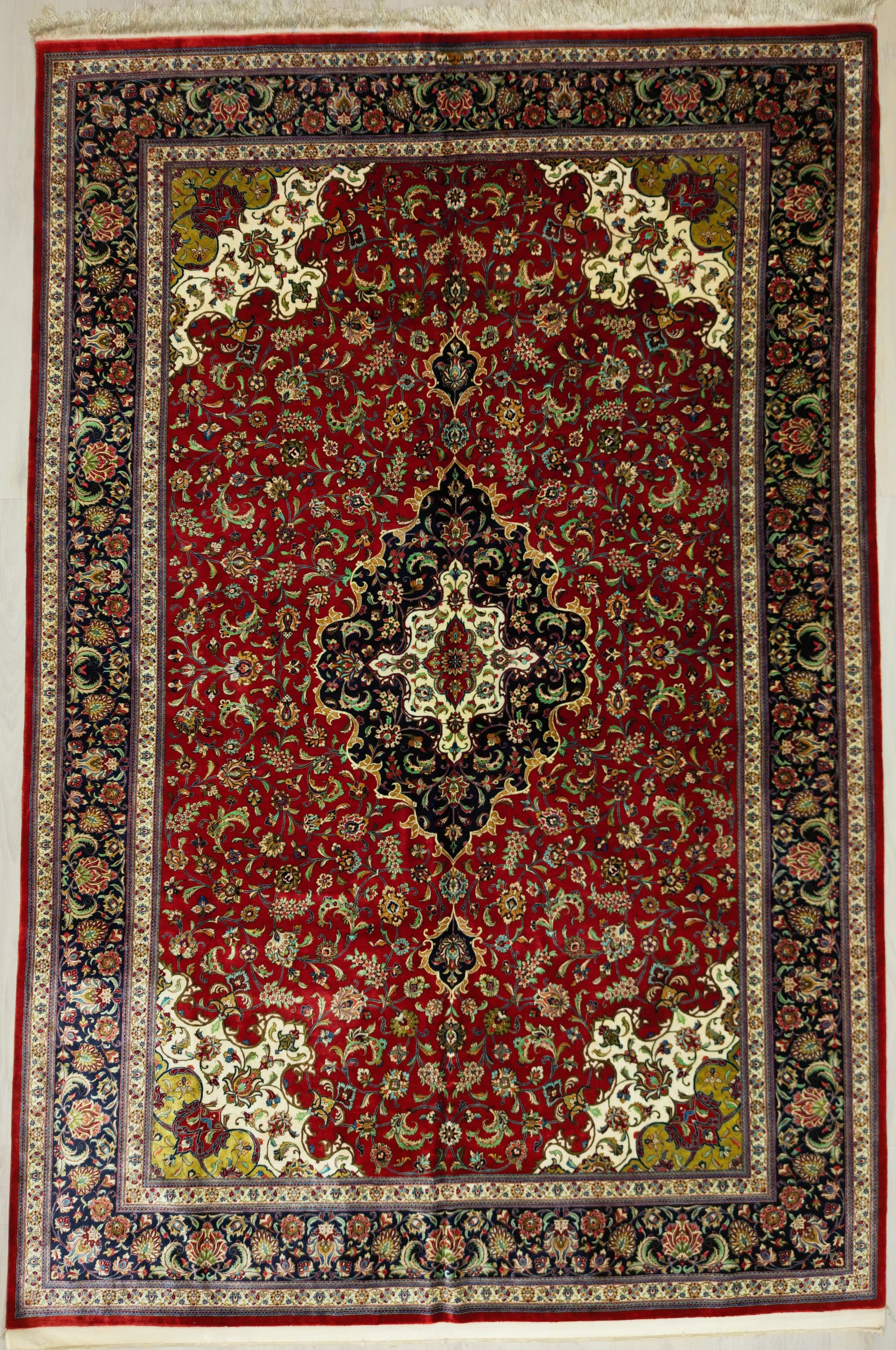 Persian Qom Rug | 6' 7" X 9' 11" | Red Colour | Floral Medallion Design | Pure Silk | Extremely Fine | Urban Production