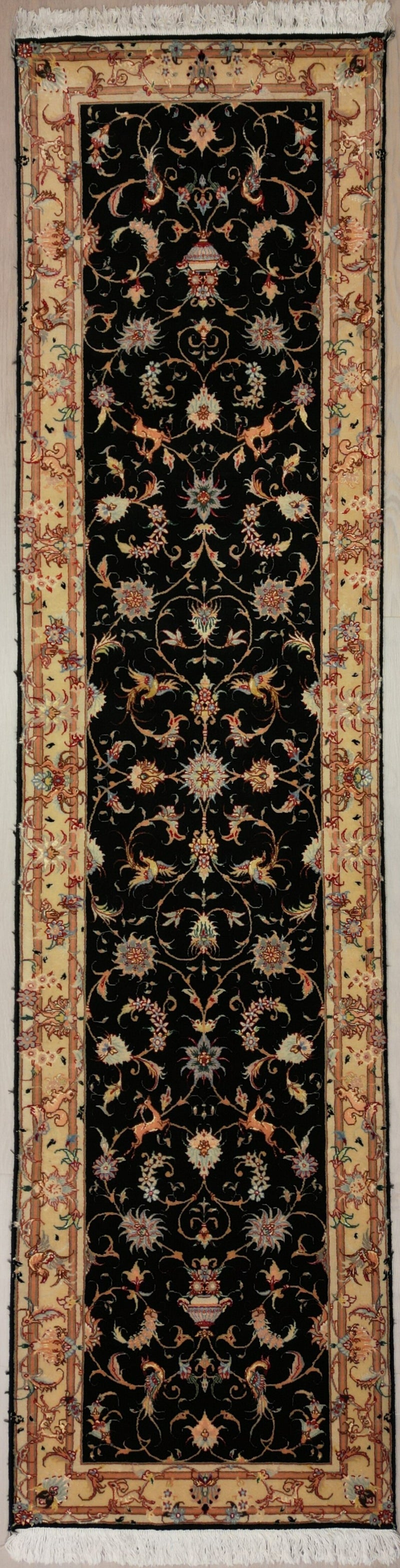 Persian Tabriz Runner | 2' 6" X 9' 10" | Black Colour | Floral Design | Urban Production