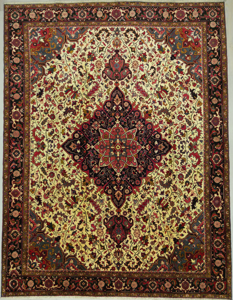 Persian Heriz Rug | 8' 6" X 11' 2" | Ivory Colour | Geometric Design | Tribal Production