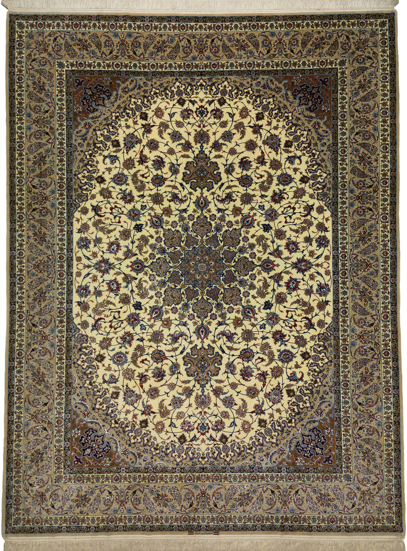 Persian Isfahan Rug | 10' 0" X 13' 3" | Wool & Silk | Extremely Fine | Light Colours | Floral Medallion Design | Urban Production