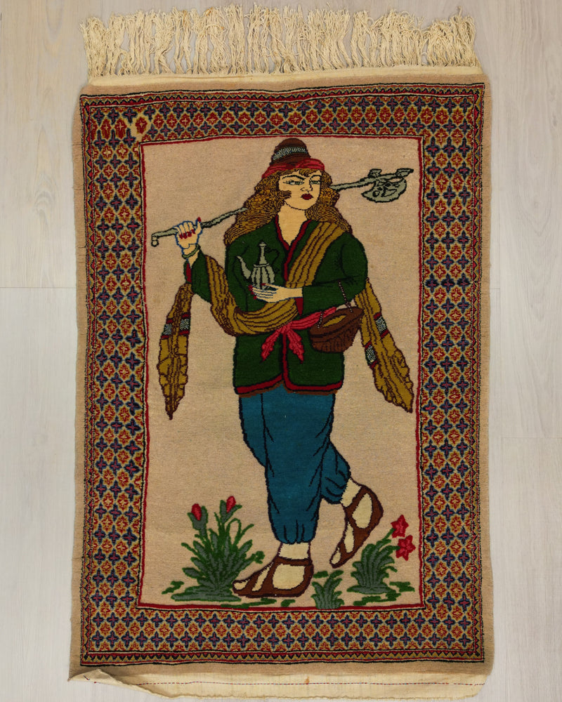 Persian Kumbad Carpet-Kilim Rug | 3' 5" X 4' 9" | Multicolour | Pictorial Design | Urban Production