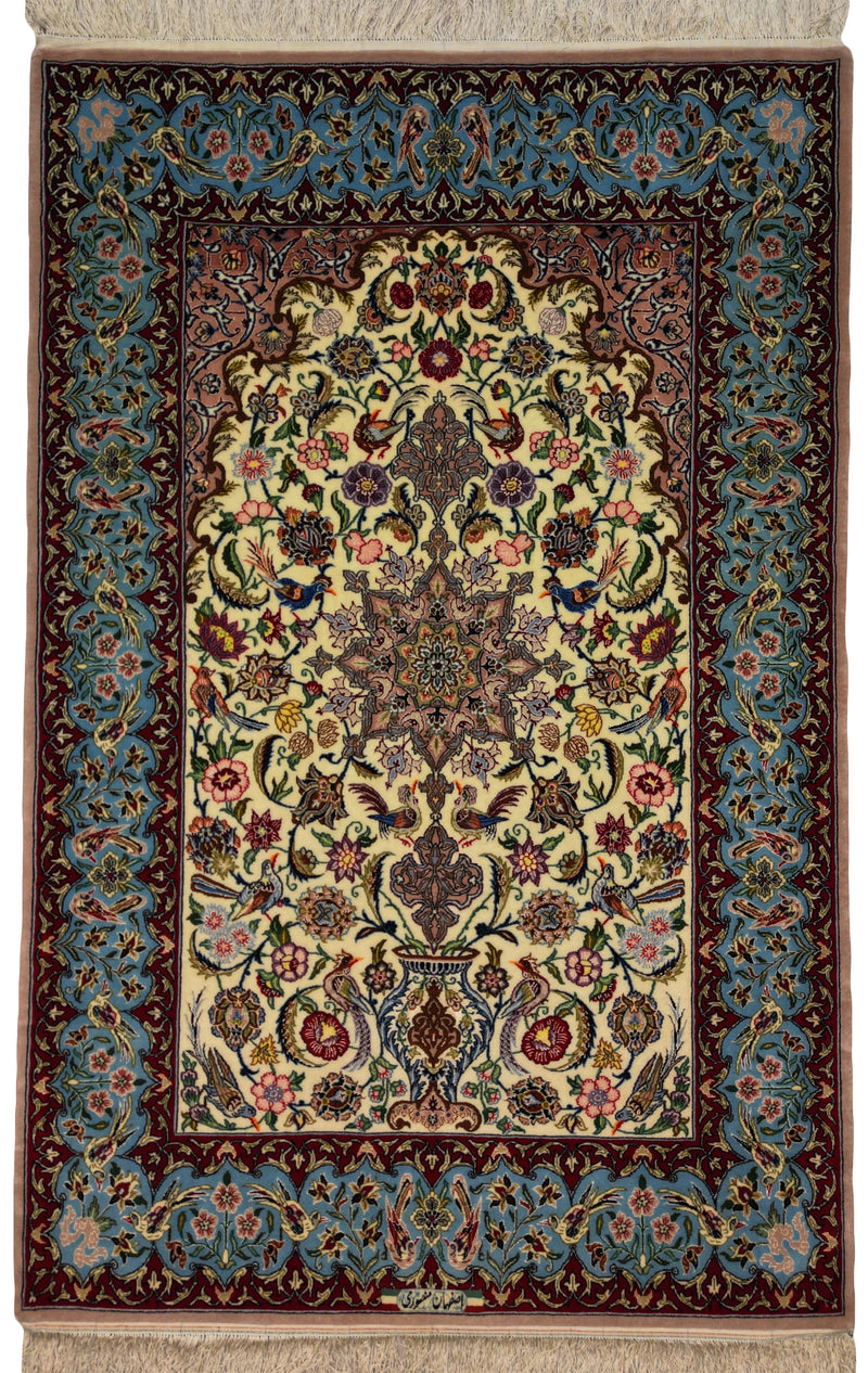 Persian Isfahan Rug | 3' 8" X 5' 8" | Ivory & Blue Colours | Urban Production