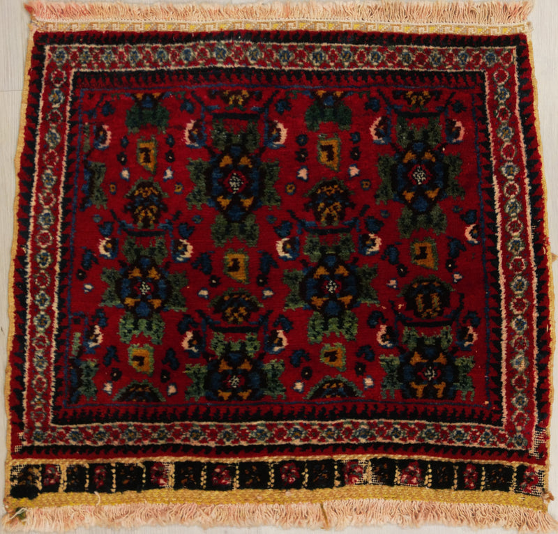 Vintage Persian Neriz Rug Circa 1950 | 2' 1" X 1' 9" | Red Colour | Allover Design | Khorjin | Tribal Production