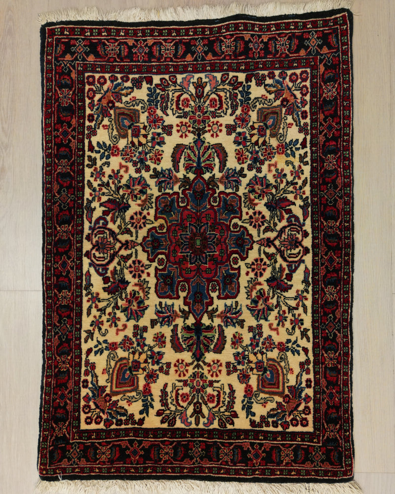 Vintage Persian Jowzan Rug Circa 1970 | 2' 2" X 3' 1" | Beige & Orange Colours | Medallion Design | Tribal Production