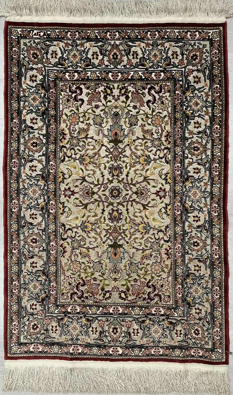 Vintage Turkish Hereke Rug Circa 1990 | 2' 8" X 3' 12" | Light Colours | Floral Allover Design | Urban Production