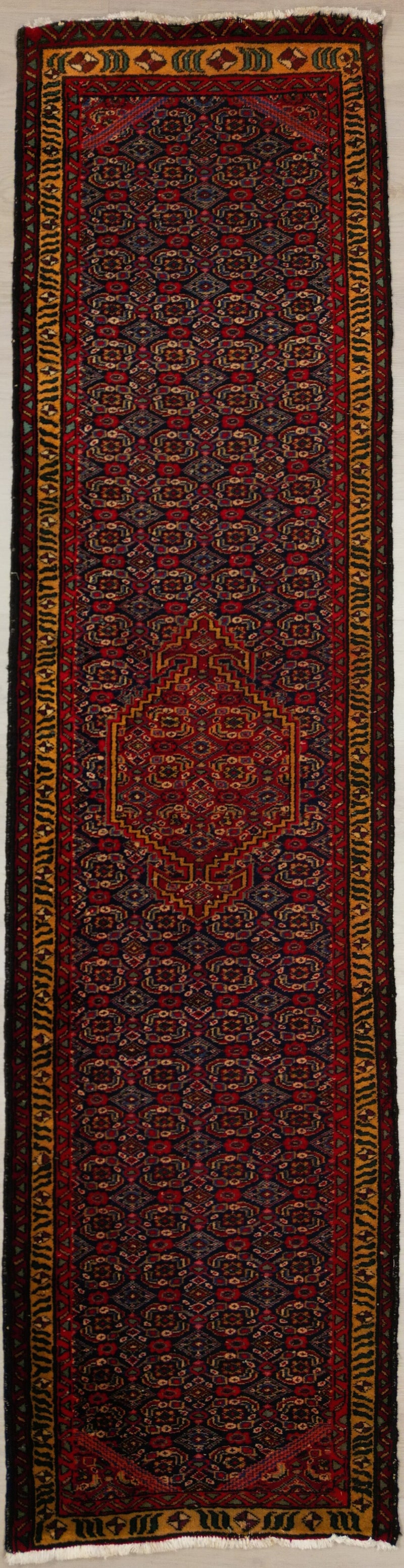 Persian Ardebil Runner | 2' 8" X 10' 0" | Midnight Blue & Red Colours | Geometric Design | Tribal Production