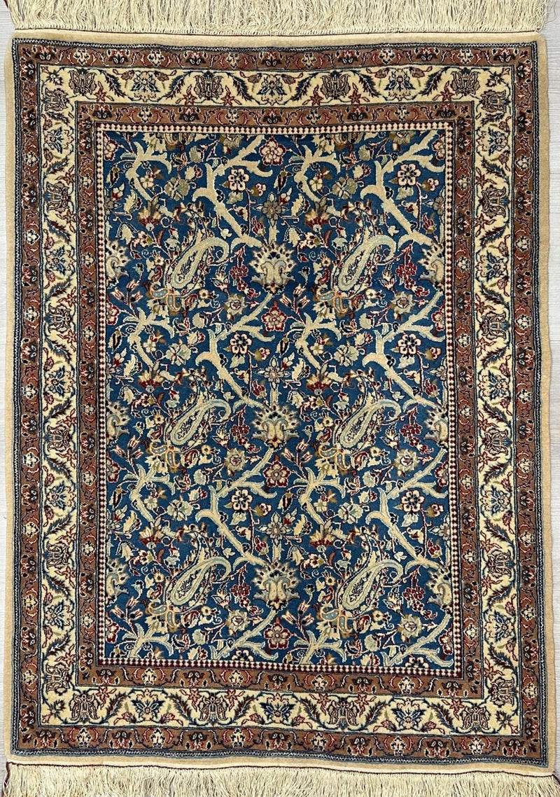 Vintage Persian Nain Rug Circa 1970 | 2' 8" X 3' 7" | Blue & Beige Colours | Urban Production