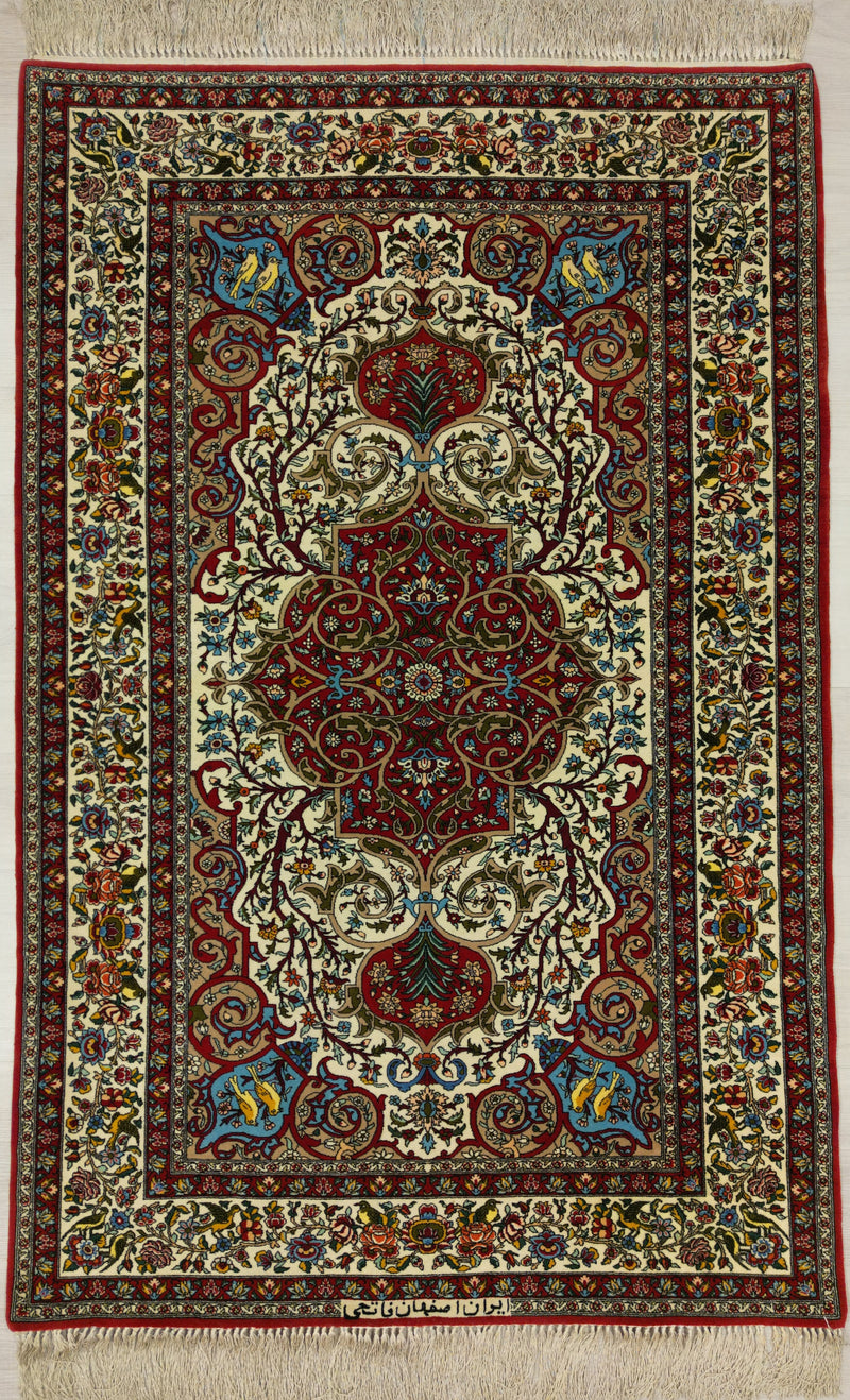 Persian Isfahan Ahmad Seirafian Rug Circa 1960 | 3' 7" X 5' 5" | Flowers & Birds (golo bolbol) design | Light Colours | Extremely Fine | Urban Production