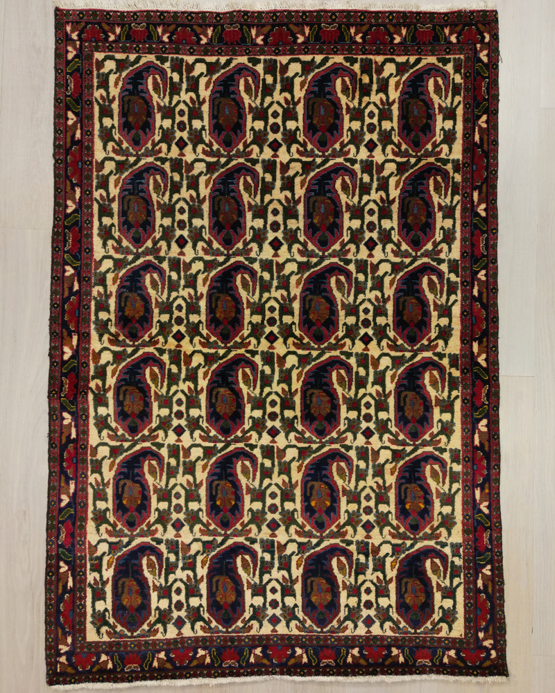 Persian Sirjan Rug | 4' 1" X 5' 12" | Cream & Blue Colours | Allover Paisley Design | Tribal Production