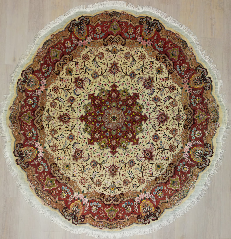 Persian Tabriz Round Rug | 8' 2" X 8' 2" | Beige & Pink Colours | Floral Medallion Design | Urban Production