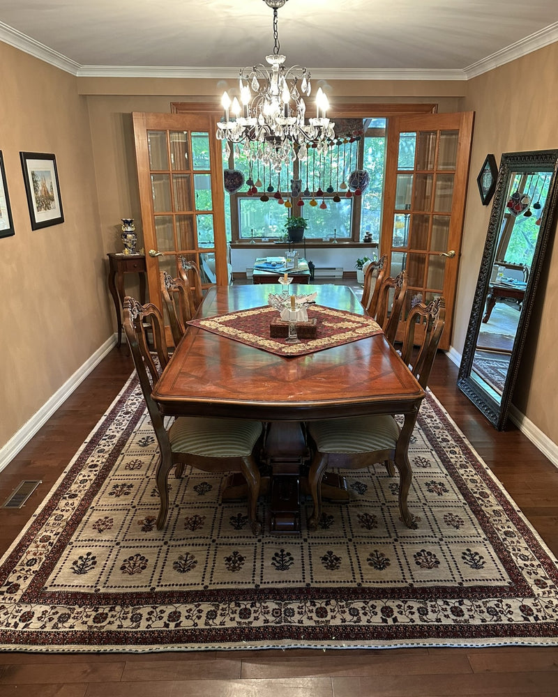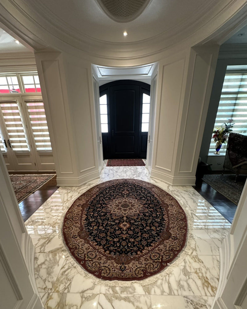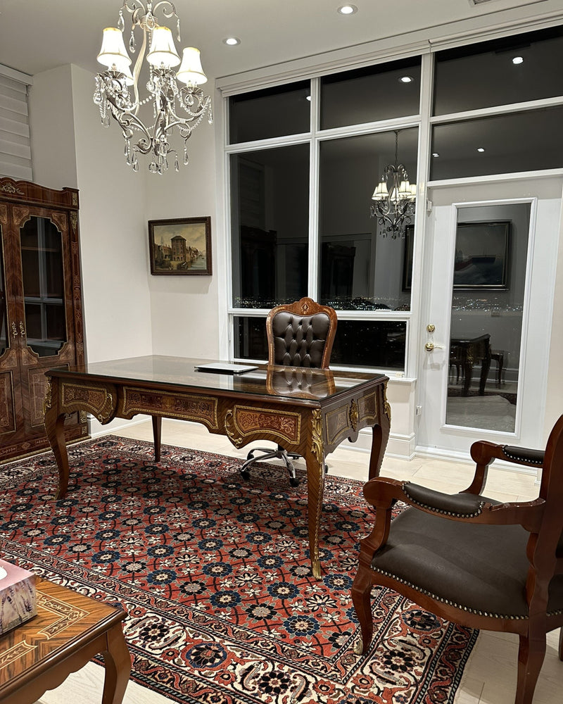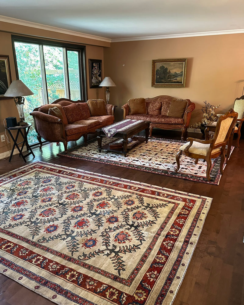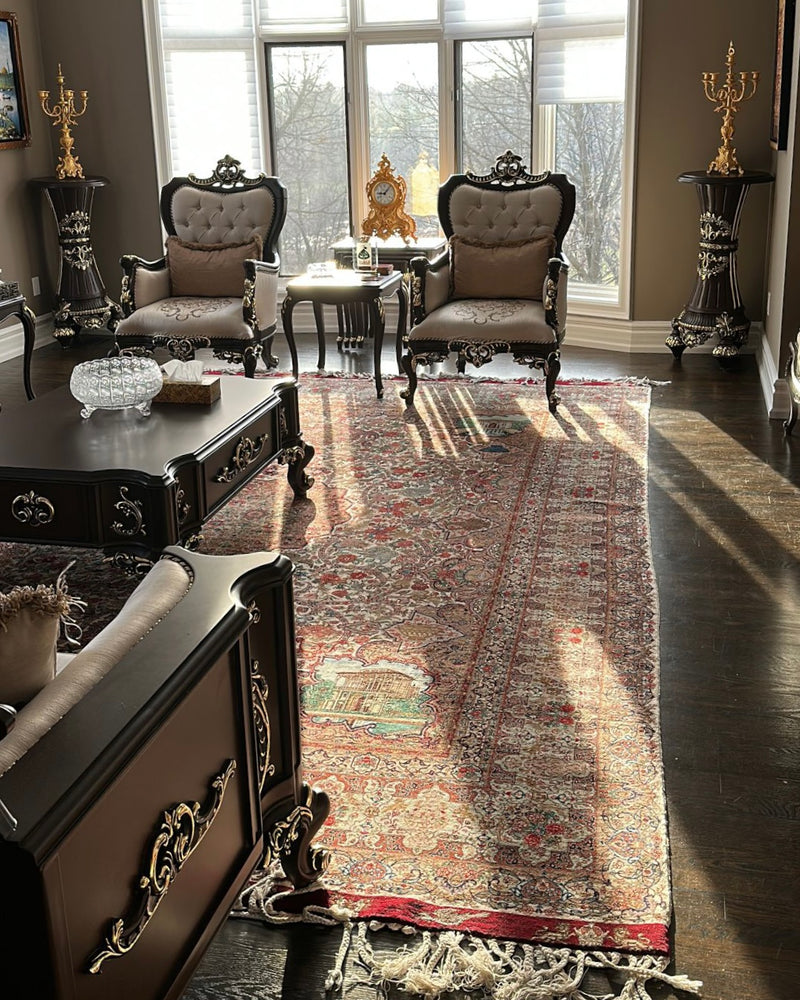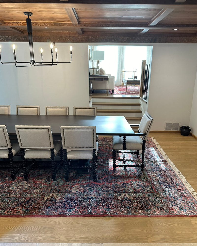 At Besmeh Rug Company, nothing gives us more pride than seeing our carpets transform the spaces of our clients. Each home tells its own story, and our hand-knotted rugs add warmth, elegance, and timeless character to these settings. From grand dining rooms and refined living spaces to home offices and more, our carpets seamlessly blend tradition with contemporary living. Below, we are pleased to share a selection of our clients’ homes, where the artistry of Persian weaving finds its place in everyday life.