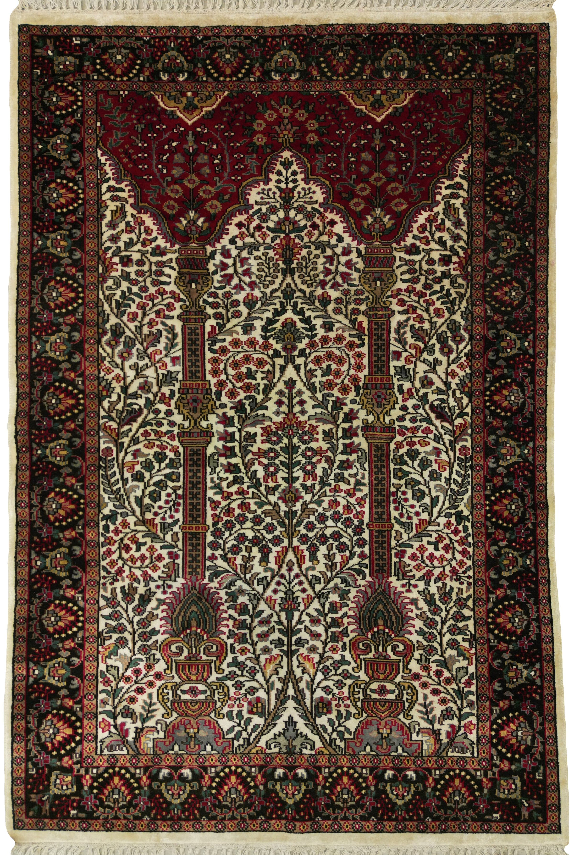 Pakistani Rug | 4' 0" X 6' 0" | Prayer Rug Design | Cream & Black Colours | Urban Production
