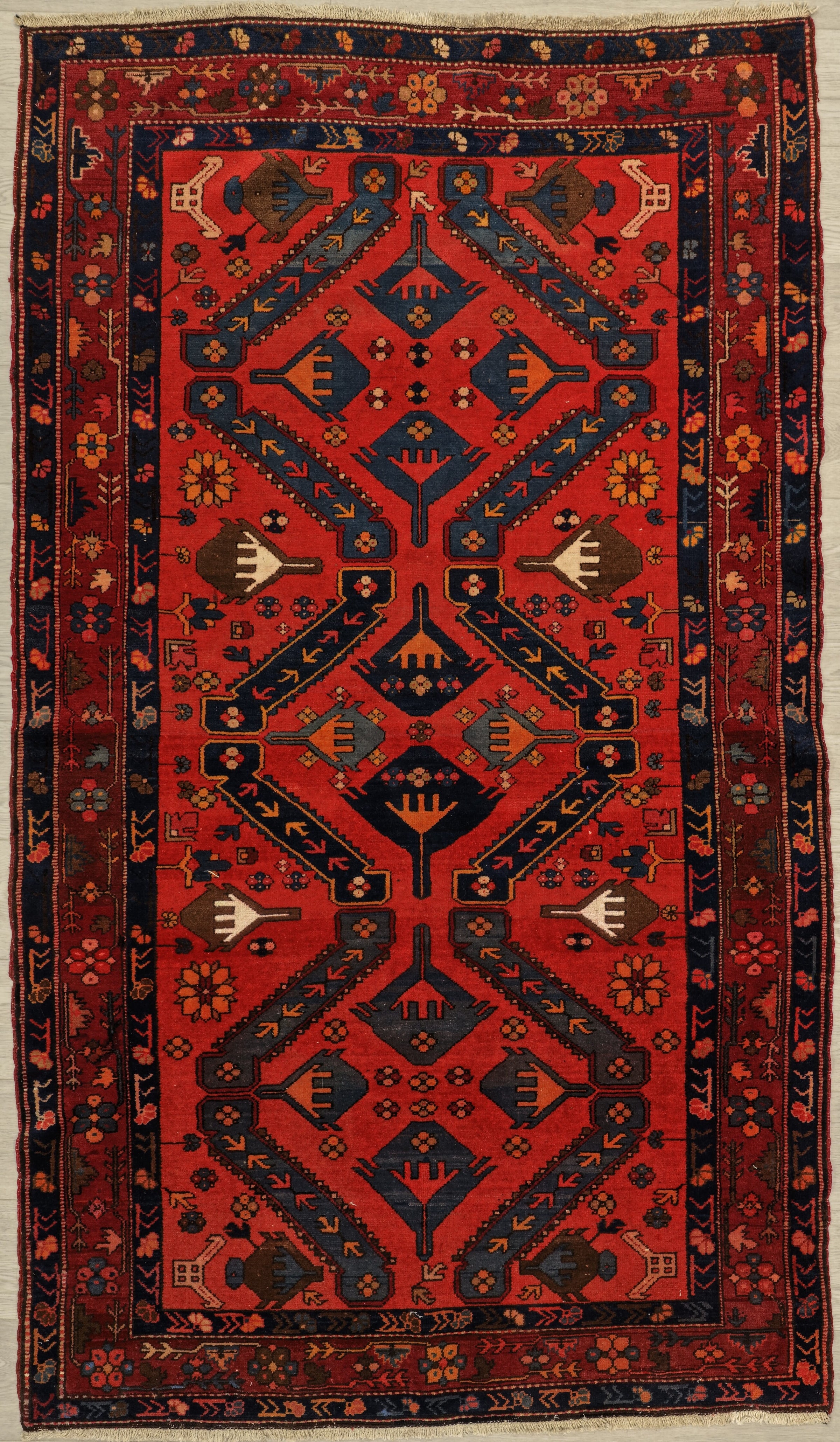 Vintage Caucasian Daghestan Rug Circa 1940 | 4' 0" X 6' 11" | Geometric Design | Red Colour | Tribal Production