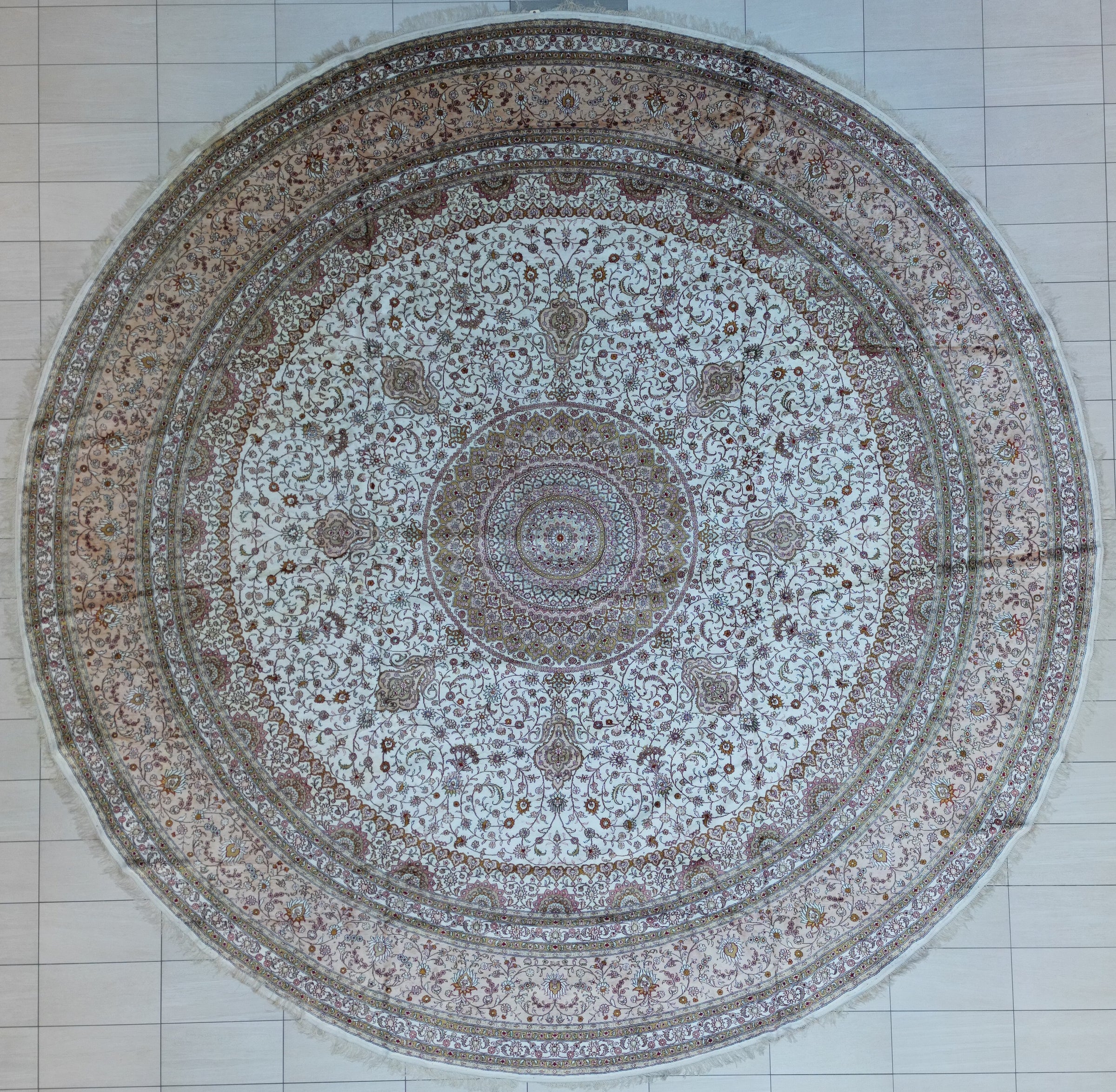 Pure Silk Rug | 17' 5" X 17' 5" | Circular Shape | Light Colours | Extremely Fine | Urban Production