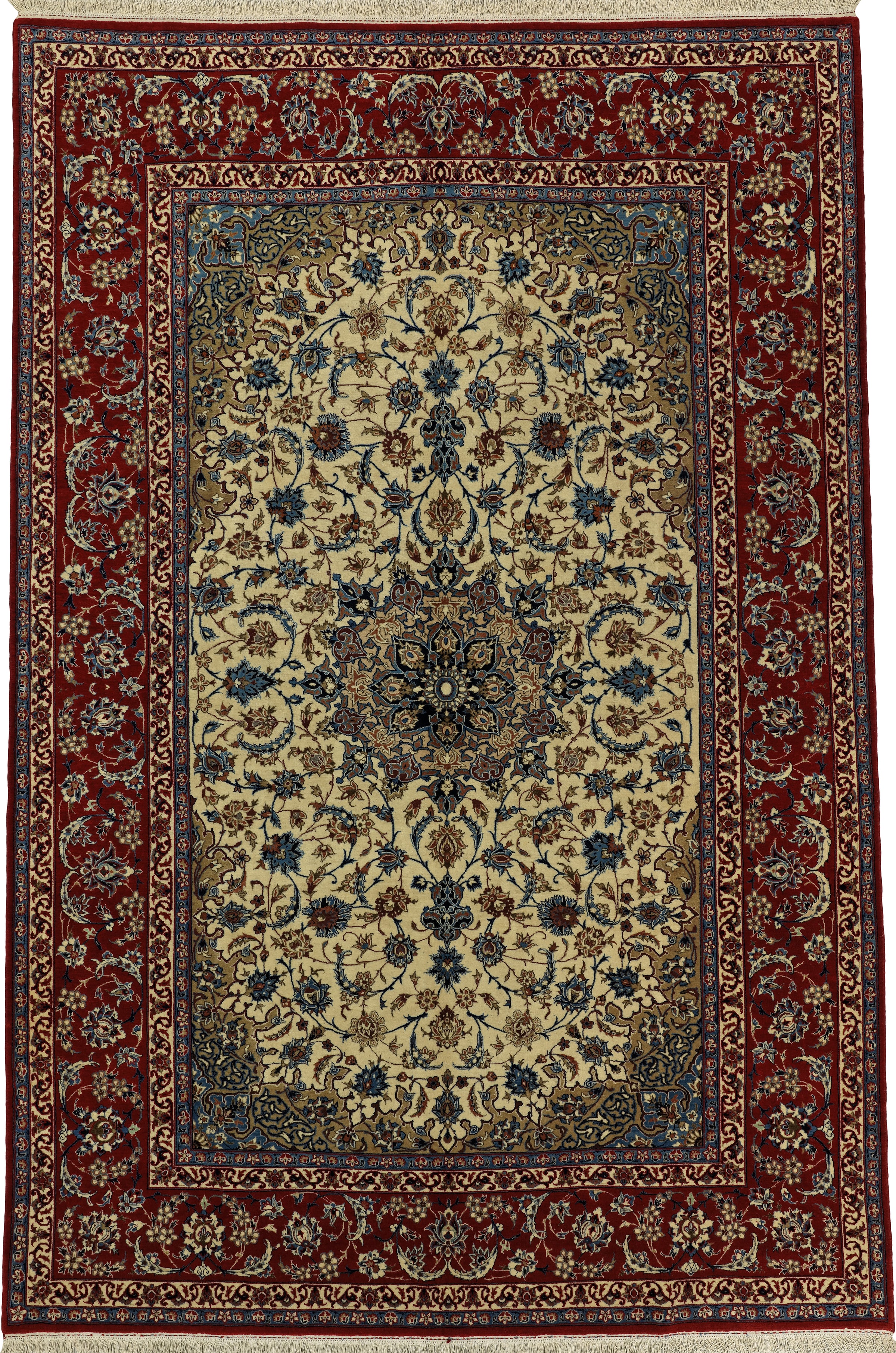 Persian Isfahan-Najafabad Rug | 6' 8" X 10' 1" | Medallion Design | Red & Beige Colours | Urban Production